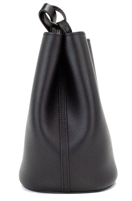 Burberry Lorne Small Black Haymarket Check Pebble Leather Bucket Handbag Purse