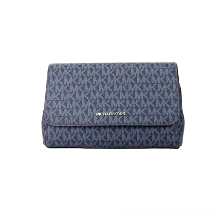 Michael Kors Jet Set Medium Navy Blue PVC Convertible Pouchette Crossbody Bag