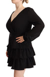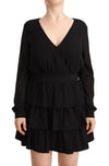 Liu Jo Black Polyester Long Sleeves V-neck Mini A-line Dress