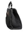 Dolce & Gabbana Black Large Knitted Crochet Shoulder Shopper DG Logo Bag