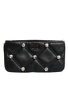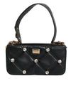 Dolce & Gabbana Black Leather Crystal Embellished Logo Shoulder Bag