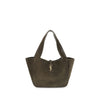 The Le 5 à 7 Bea Tote Bag by Saint Laurent, made of suede leather, is an elegant versatile accessory with a refined design. The closure features a strap with a Cassandre logo plaque and a snap button, giving it a distinctive and sophisticated touch. The two top handles allow it to be carried comfortably, while the interior, with a single compartment, offers ample space for essentials.