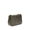 The Jamie Medium Shoulder Bag by Saint Laurent, crafted in fine lambskin leather, stands out for its all-over padded design that gives it a sleek and sophisticated look. The front flap, with snap-button closure, provides security and practicality, while the sliding chain shoulder strap, embellished with a tassel detail, allows it to be worn comfortably and stylishly. The three-dimensional, gold-plated, appliquéd YSL logo on the front adds a distinctive touch of luxury. Tone-on-tone topstitching completes the refined design, while the single-compartment interior offers simple, functional organization.