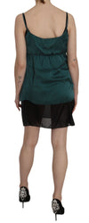 PINK MEMORIES Silk Green Spaghetti Strap Shift Mini Dress