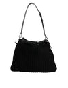 Dolce & Gabbana Black Cashmere Knitted Leather Shoulder Bag