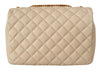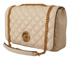 Indulge in the unmatched elegance of this stunning shoulder bag, presented by the prestigious house of Versace. This brand new accessory, complete with tags and its own dustbag, is a symbol of luxury and sophistication. Crafted from the finest Nappa Leather in a pristine white hue, this bag features a sleek flap snap closure, adorned with the iconic Medusa head logo. The interior boasts a main compartment and a slip pocket, perfect for organizing your essentials. Gold-tone hardware, along with a chic chain shoulder strap, offers versatility for wearing over the shoulder or as a crossbody, ensuring you make a statement wherever you go.