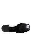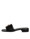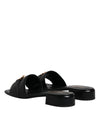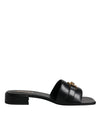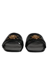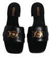 Versace Black Leather Logo Plaque Slip On Slides Flats Shoes