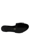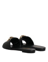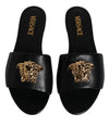 Versace Black Leather Logo Plaque Slip On Slides Flats Shoes