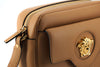 Discover luxury at your shoulder with this stunning Versace Camera Case Shoulder Bag. Perfect for the fashion-savvy individual, this exquisite piece boasts not only a sleek design but practicality with its structured compartments. Crafted from the finest calf leather in an elegant brown hue, this bag features a zip closure leading to a main compartment and an interior pocket, ensuring your valuables stay organized and secure. The external pocket with flap top closure adds extra space, while the gold-tone metal hardware exudes glamour. Whether you prefer shoulder or crossbody, the removable and adjustable leather strap caters to your comfort and style preferences. Add effortless sophistication to your ensemble with this timeless accessory.